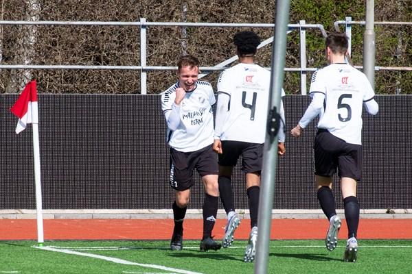 De to målscorere, Simon Ruben Christoffersen og Gustav Vind Rasmussen, sammen med Kevin Cederkrantz, der holdet buret rent for anden kamp i træk.