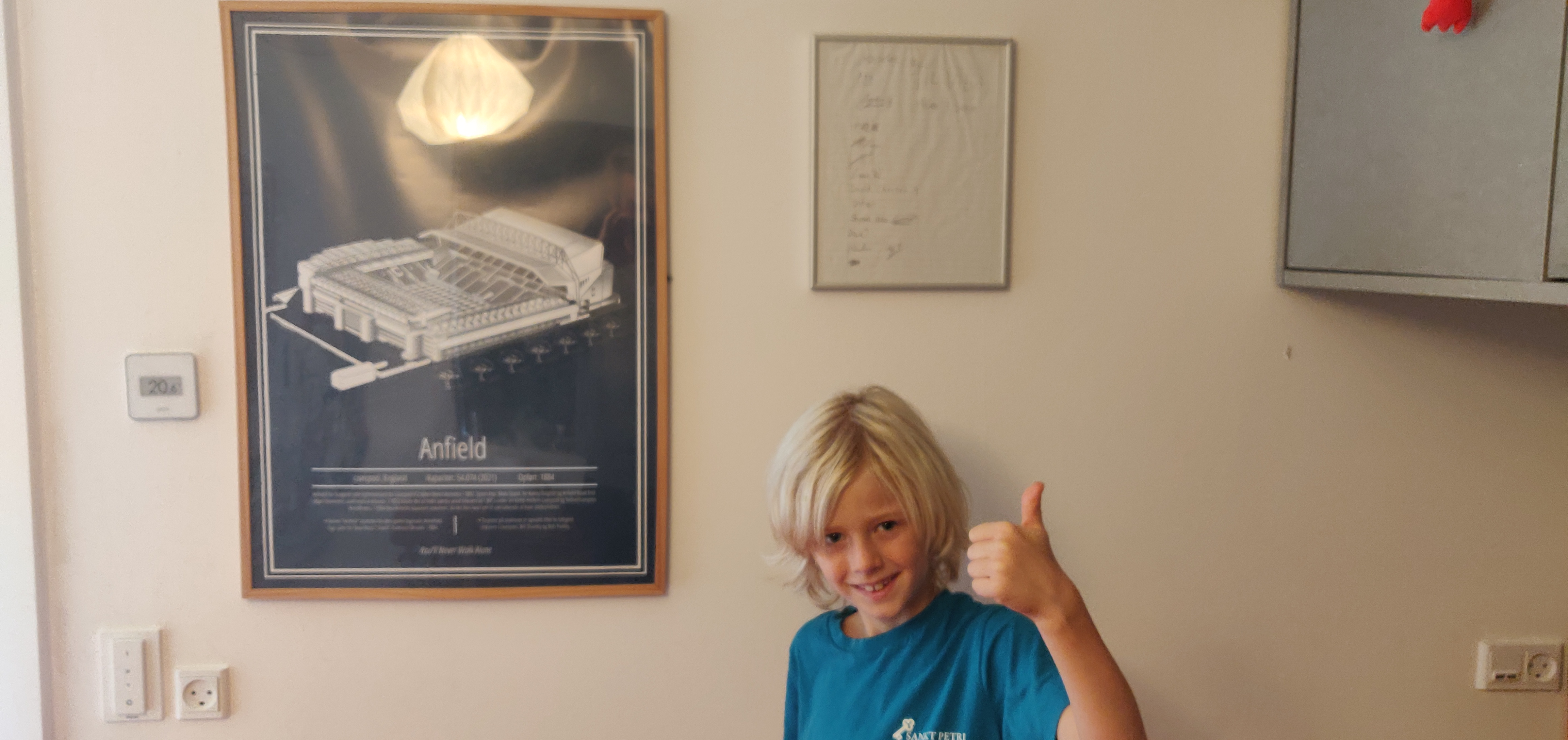 Vitus havde i weekenden en kæmpe oplevelse, hvor han fik debut som bolddreng og gik med 1. senior ind på banen. Efterfølgende fik Vitus autografer af alle holdets spillere, der nu hænger i ramme på hans værelse ved siden af Anfield (se billede)
