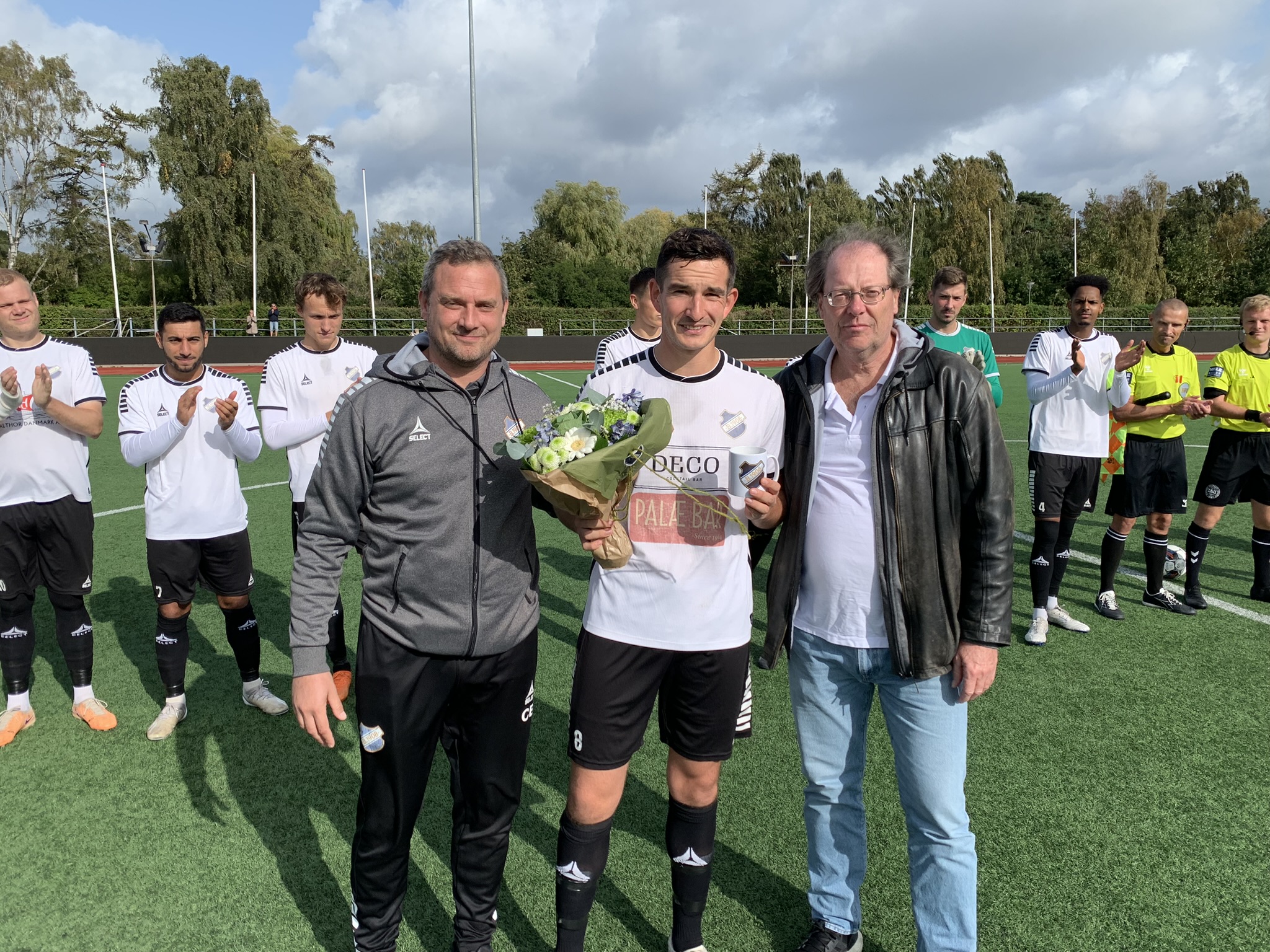 Der var blomster, krus og klapsalver til B 1908's August Rosenmeier inden lørdagens kamp mod Ledøje-Smørum. Årsagen: 'Agge' spillede sin kamp nummer 100 på B 1908's førstehold.