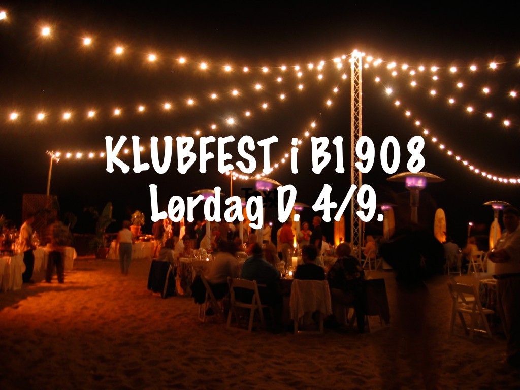 B1908 inviterer til stor åbningsdag af klubben. Efter 1 1/2 år med nedlukninger og svære regler, er det tid for at få gang i vores klubhus og liv i klubben igen. Det gøres med en klubfest, som vi deler op i 2 arrangementer. På dagen vil der fra kl. 10 til 15 være masser af aktiviteter i klubben, på græsset ved klubhuset og i teltene - sjove lege, spil og konkurrencer - samt et loppe/bytte marked med fodbold udstyr.‘Madhuset 8erne’ holder åbent for salg af drikkevarer, mad osv.KL. 18 inviteres der til middag, BAR, musik og lotteri.Det er for alle, der ønsker en sjov dag og en B1908’er venlig fest.Der er tilmeldning til ‘Grilbuffet’ om aftenen og prisen pr. næse er 150 kr. for voksne (U15 op) og 100 kr. for børn (U14 ned). Betalingen foregår på dagen.Det vil være holdlederen i hver årgang, der kommer til at stå for tilmeldningerne.Hvis man ikke er tilknyttet et hold (holdleder) vil man kunne tilmelde sig gennem:Anja Kok : mail. anjab1908@gmail.comeller mobil 60 89 46 87 (sms)Charlotte Pedersen : mail. seiersen.Pedersen@hotmail.com mobil 23370314 (sms)VIGTIGT………alle skal senest fredag d. 27 august kl. 19.08 have givet tilmeldningerne til Anja eller Charlotte.