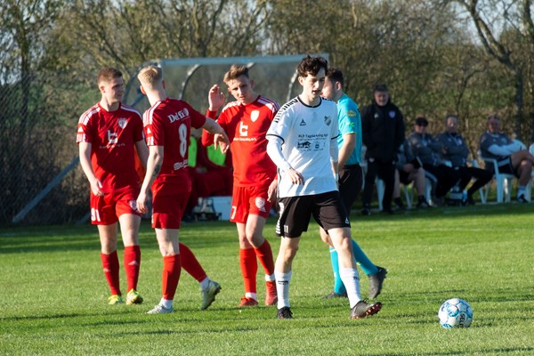 B 1908 fik allerede efter fire minutters spil den første store chance, da Mikkel Knudstrup afsluttede på oversiden af overliggeren. I selvsamme opspil fik Gustav Vind Rasmussen desværre en skade og måtte lade sig udskifte med Magnus Langhorn, der gjorde et fornemt indhop på midtbanen.